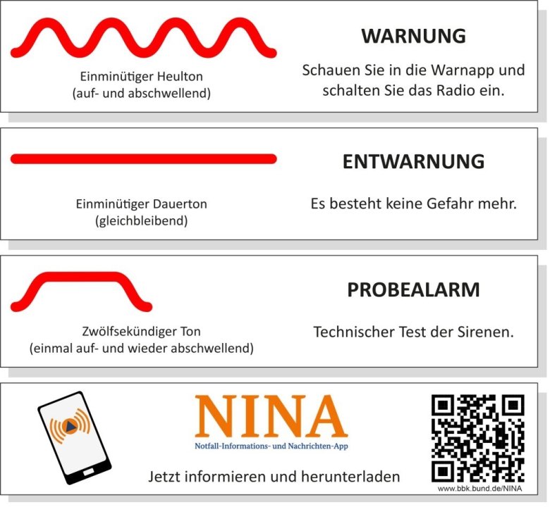 Nachstehend sehen Sie die Varianten der Sirenenalarmierung: